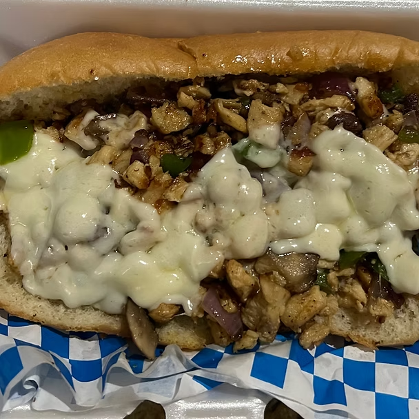 Diced chicken breast with sauteed sweet bell peppers and onions covered in provolone. Served with special seasoning and fries.